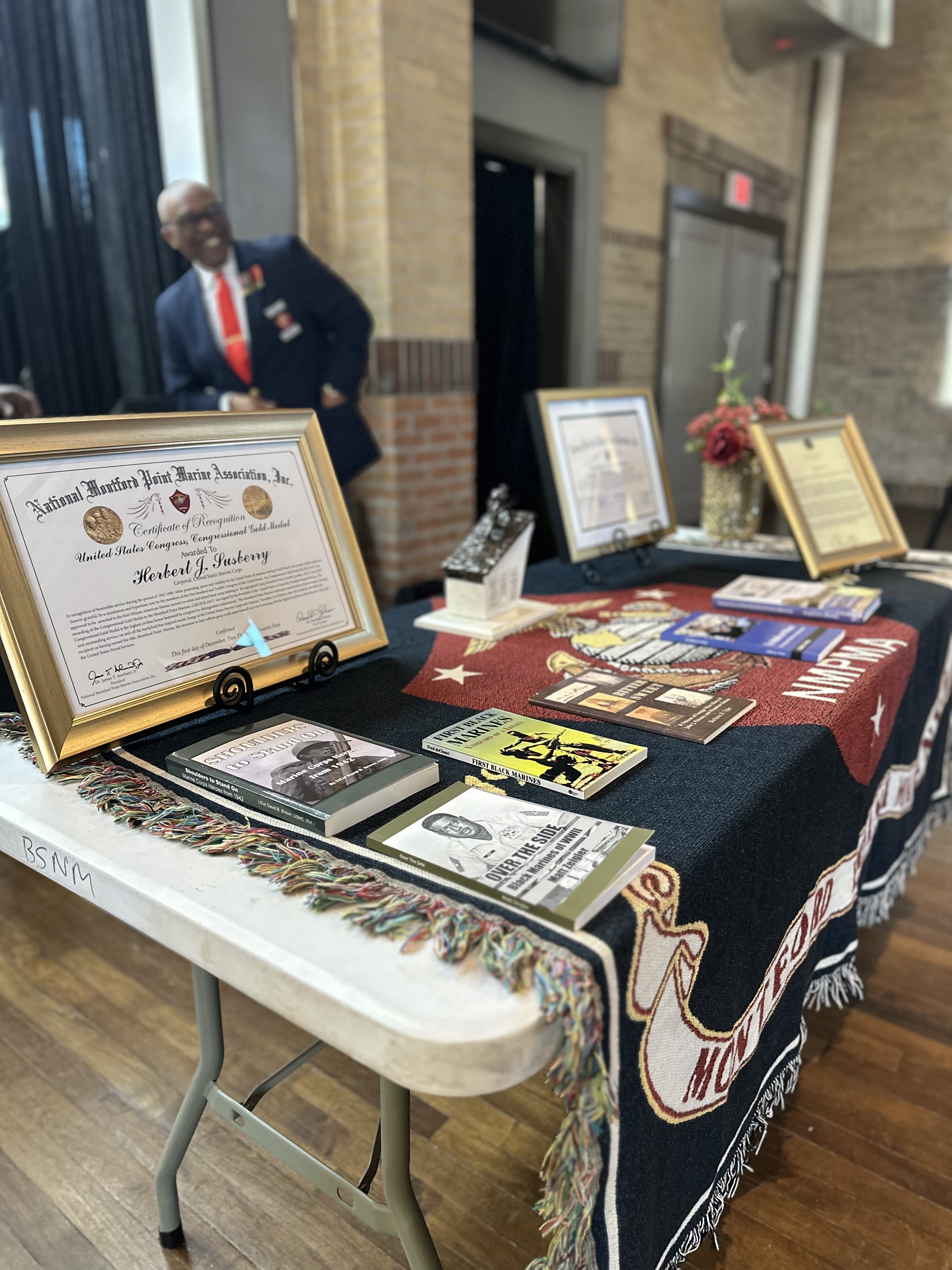 As a result of my research and, in collaboration with Sergeant Geeter and the National Montford Point Marines Association, Inc. (NMPMA) National Chaplain and Houston Chapter President, Dr. Nathaniel Broussard, Herbert Joel Susberry was awarded the Congressional Gold Medal for his pioneering service.